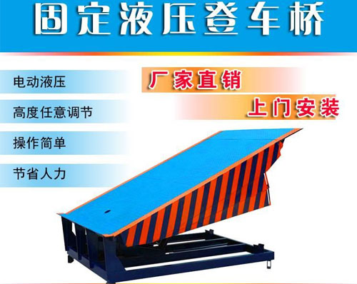 日照物流固定式登車橋 8噸電動液壓登車橋 固定式集裝箱卸貨平臺固定式登車橋是實物快速裝卸的輔助設備,它的高度調節功能使用貨車與庫房的貨臺之間架起一座橋梁,叉車等搬駛及貨車內部進行貨物的批量裝卸,僅需單人作業,即可實物的快速裝卸。它使企業減少大量勞動,提高工作效率,獲取更大經濟效益。